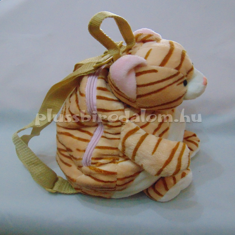 Csíkos cica hátizsák, hasán külön zsebbel, állítható pánttal. 35 cm