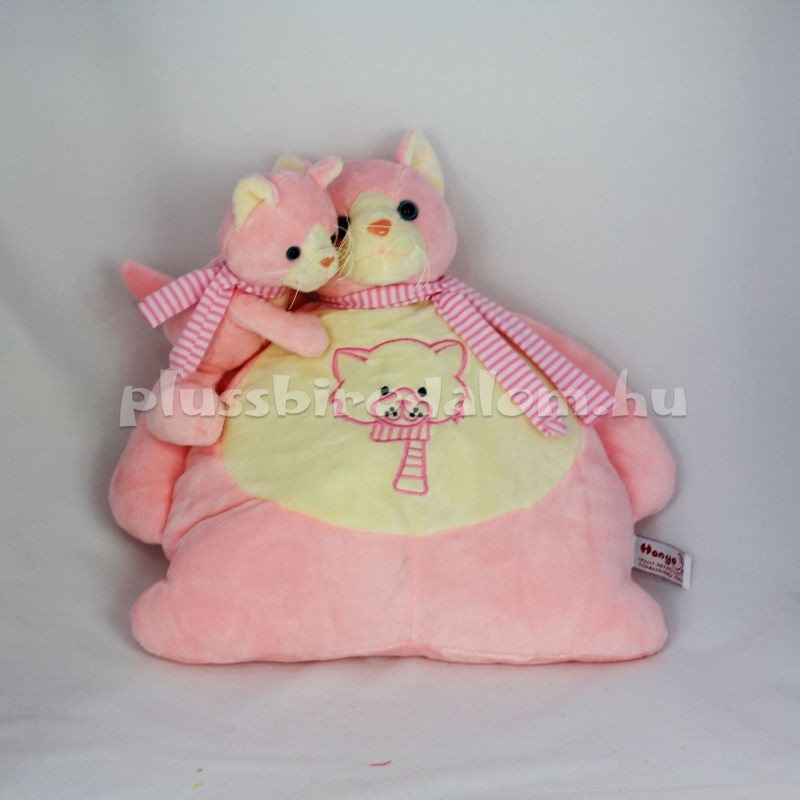 Rózsaszín-fehér színű. Cica Mama kölyökkel. Magassága: 35 cm, Szélessége: 37 cm