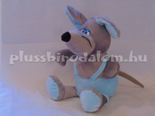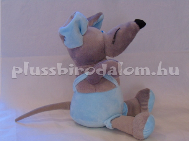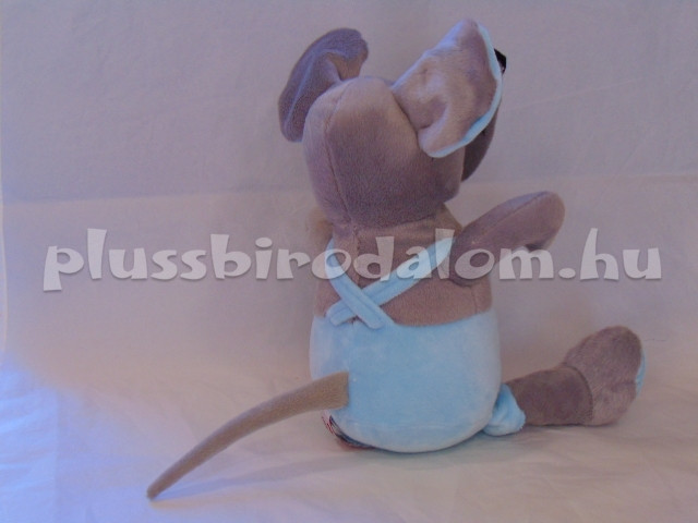Egér-fiú, ülő, szürke színű, kék nadrágban 25 cm