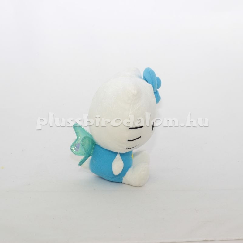 Plüss Hello Kitty tündér figura, ülő, világoskék ruhában, világoskék masnival.