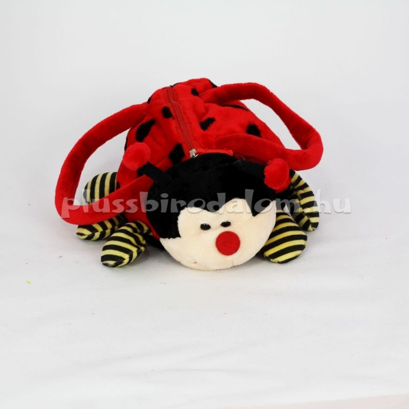 Plüss Katicabogár kétfüles kézi táska. Piros-fekete színű, 22 cm.