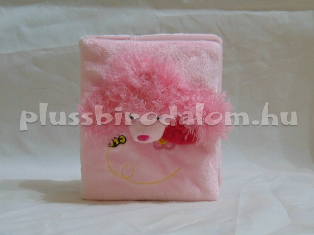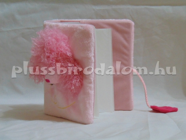 Plüss borítású fotóalbum, rózsaszín színű, kutyus fejjel az elején.