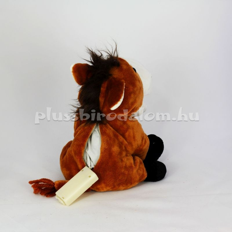 Használati útmutató: A báb az alsó részén át kézre húzható. Felhúzás után az állat szája kezünkkel mozgatható. Amennyiben elemet is helyezünk a bábuba, akkor hangot is ad! Ehhez 2 db 1,5 V-os, hagyományos ceruza elem szükséges (a termék ára nem tartalmazza az elemeket, az elem nem tartozéka a terméknek). Az elemeket a bábu hátán lévő tépőzárás rész kinyitásánál lehet behelyezni az elemtartó tokba. (lásd a termékgalériában látható képen). Az elemtartó tokot egy csavar kicsavarásával tudjuk szétnyitni.