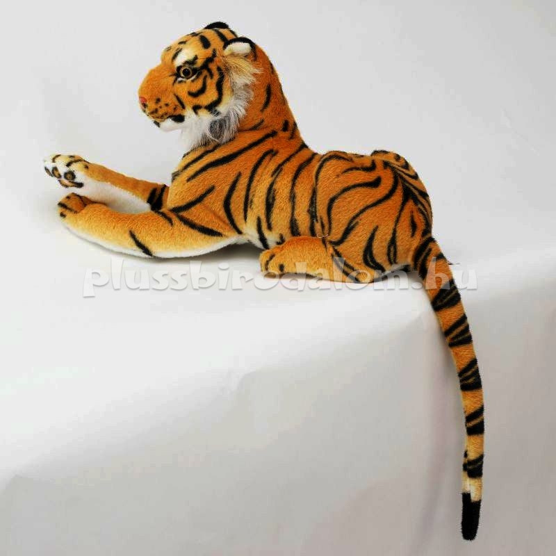 Plüss Tigris figura. Fekvő, barna színű. 45 cm