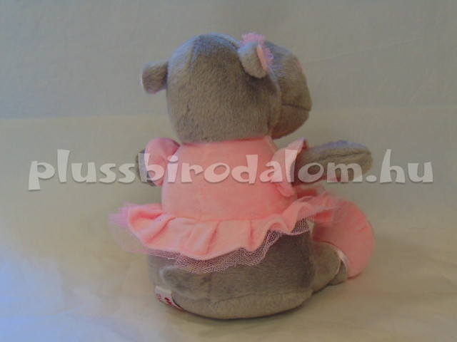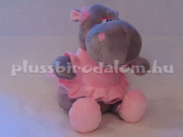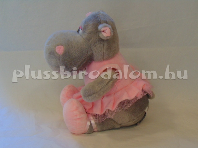 Víziló-lány, ülő, szürke színű, rózsaszín ruhában 25 cm