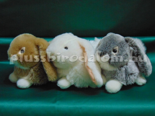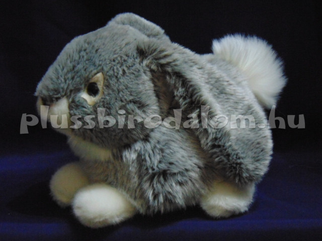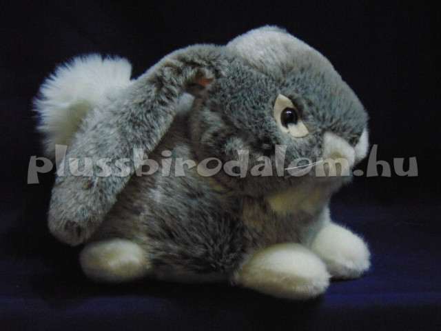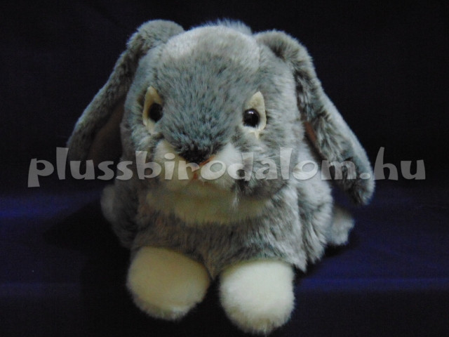 Plüss nyuszi figura, fekvő, szürke színű. 25 cm