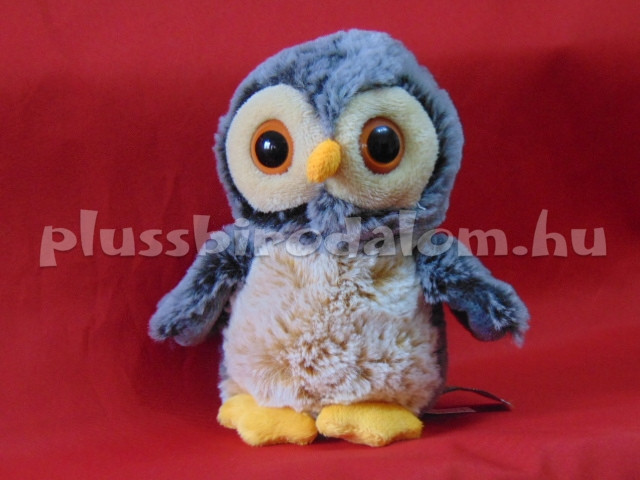 Plüss bagoly figura, álló, sötétszürke hátú-drapp hasú színben. 14 cm