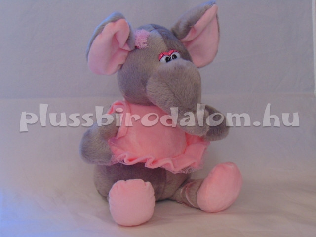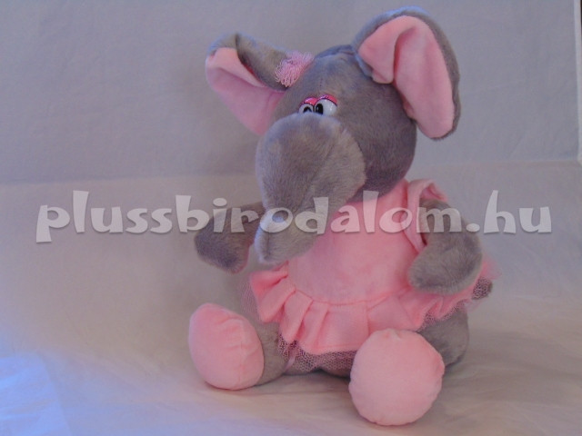 Elefánt-lány, ülő, szürke színű, rózsaszín ruhában 25 cm