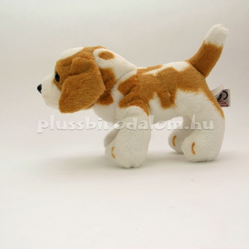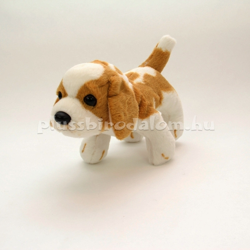 Plüss beagle kutyus figura, álló kivitelű, világosbarna bicolor.