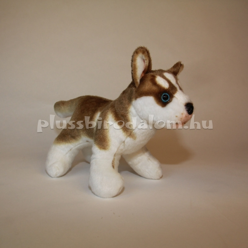 Plüss barna husky kutyus figura, álló kivitelű.