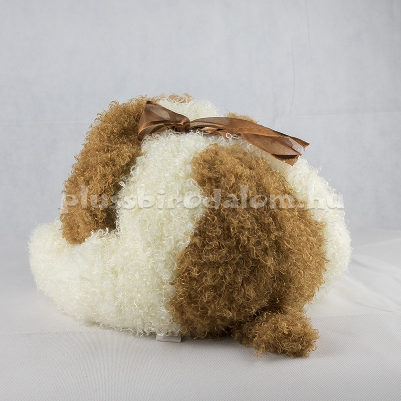 Fekvő, barna masnival, világosbarna-vajszínű foltos-bolyhos. 50 cm