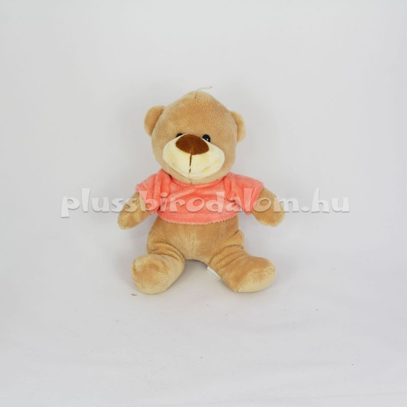 Ülő, korall piros pulcsiban, drapp színű. 18 cm