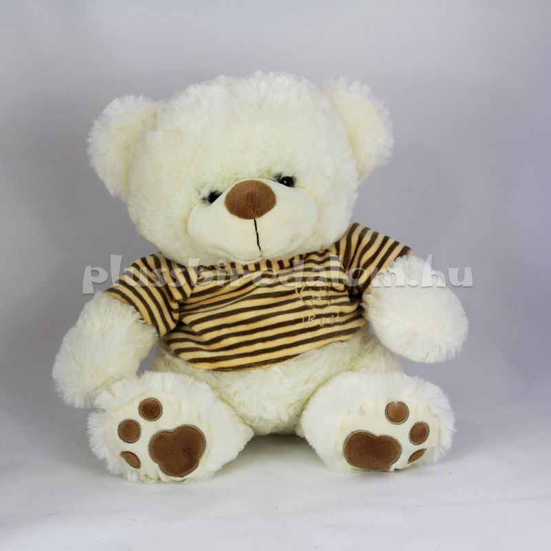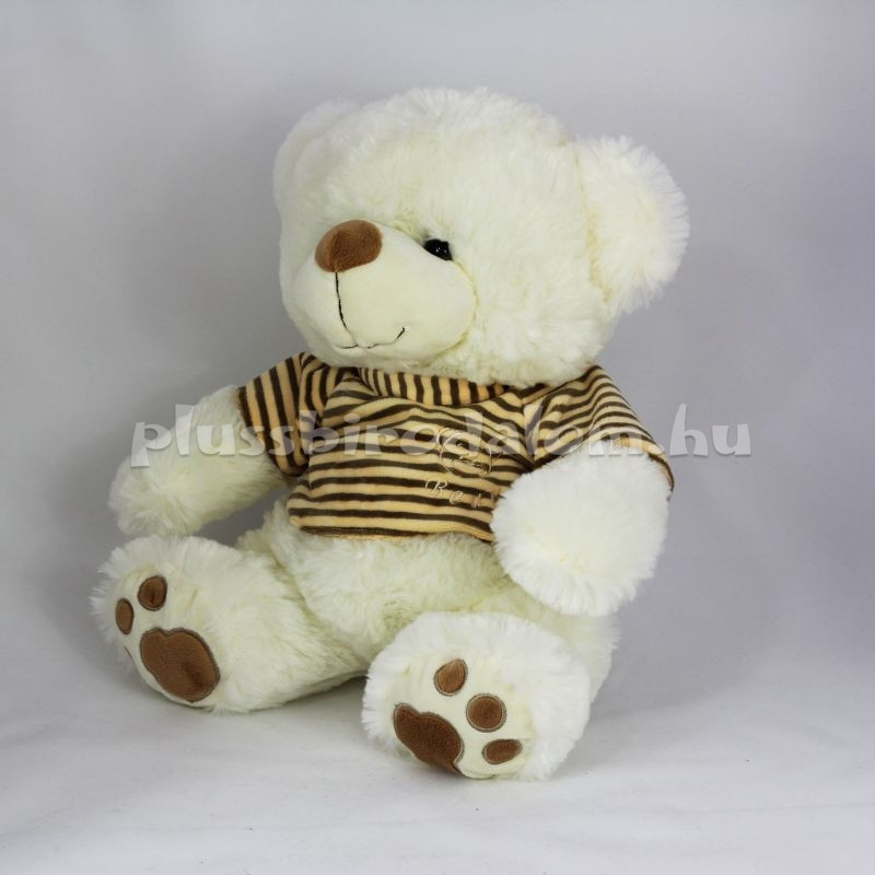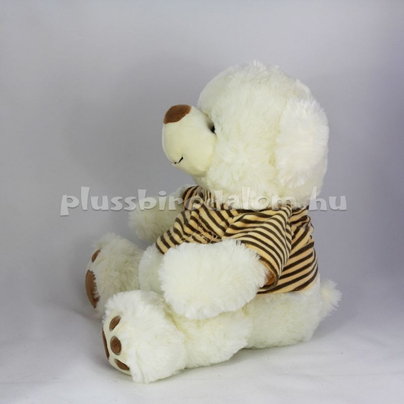 Ülő, barna csíkos pulcsiban, fehér színű. Ülő magassága: 35 cm