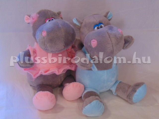 Víziló-fiú, ülő, szürke színű, kék nadrágban 25 cm